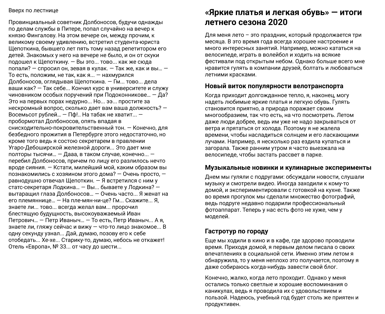 Слева — рассказ Чехова «Вверх по лестнице». Справа — бесплатное сочинение «Как я провела лето» для 7 класса с